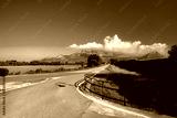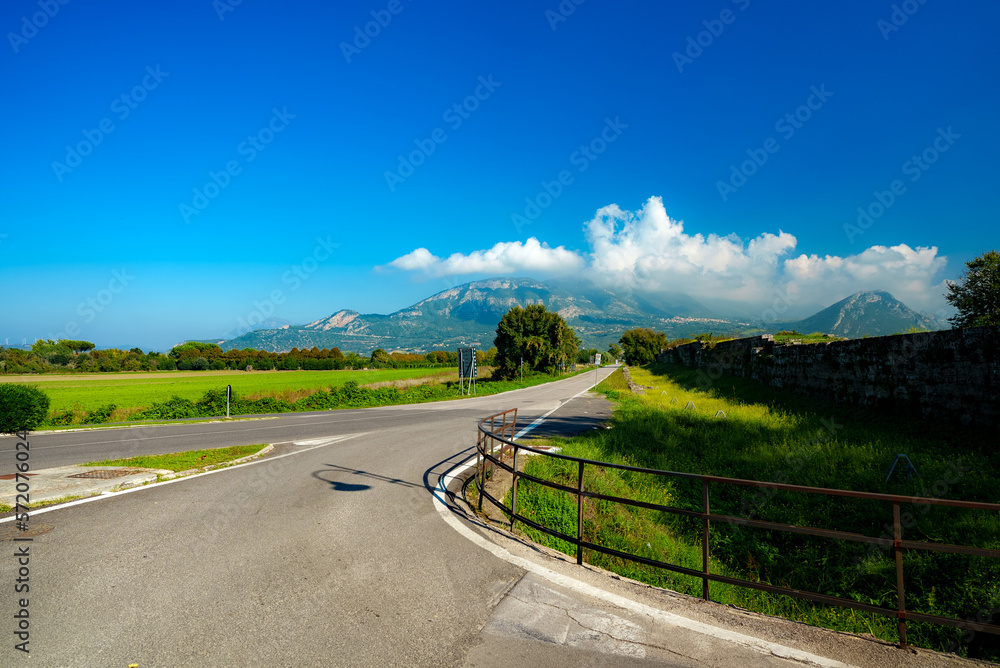 Road and view of Mount Polveracchio and Monte Soprano in Italy.