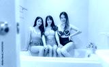 Three asian women sexy sit on the tub in the bathroom at Pool Villa for a selfie.