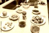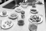 Dinner meal preparation or serving of healthy small dishes with vegetables, fruit and nuts on table for orthodox Christmas twelve plates with juice