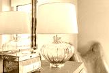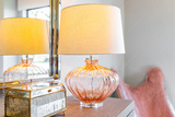 Bright modern room interior with cozy vintage pink chair and yellow lamp as decor decorations in model staging home, apartment or house