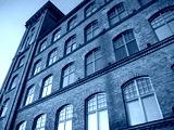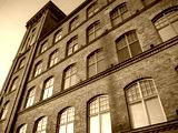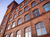 Old finnish industrial building made of bricks. This old spinning mill was built in 1890s, it has a tower and large arched windows.