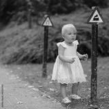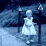 Little baby girl at educational playground learning traffic sign