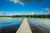 mangrove forest scenery and bridge,Mangrove Tree of Mangrove Forest. Seedlings grown on the coast Planted to take care of the coast Small trees of mangrove trees are growing.