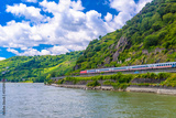 Intercity express train IC in Rhein Rhine river in Loreley, Rhein-Lahn-Kreis, Rhineland-Palatinate, Rheinland-Pfalz, Germany