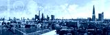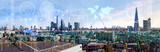 City of London view, business and financial area of capital with business intelligence key performance indicators, charts, stock market data. International business and economy monitoring concept