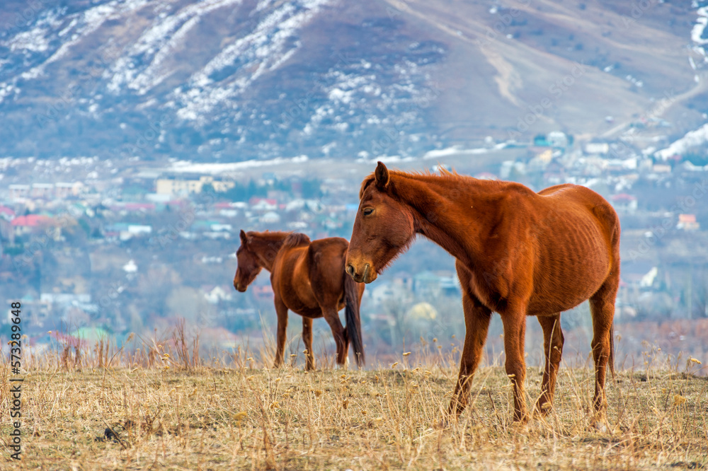 horses in the mountains