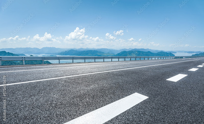 Asphalt road and green mountain nature background