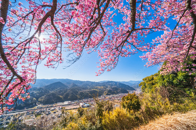 河津城跡公園 河津町の町並みと河津桜【静岡県・賀茂郡】 Kawazu observatory, beautiful Kawazu cherry blossoms and townscape - Shizuoka, Japan