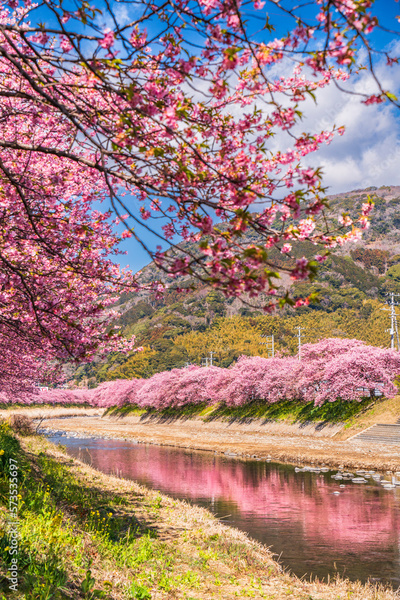 河津桜発祥の地 河津町の桜並木【静岡県・賀茂郡】 Row of cherry blossom trees in Kawazu Town, the birthplace of Kawazu cherry blossoms - Shizuoka, Japan