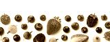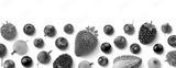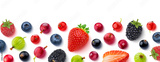 Fruits and berries frame isolated on white background, top view, flat lay