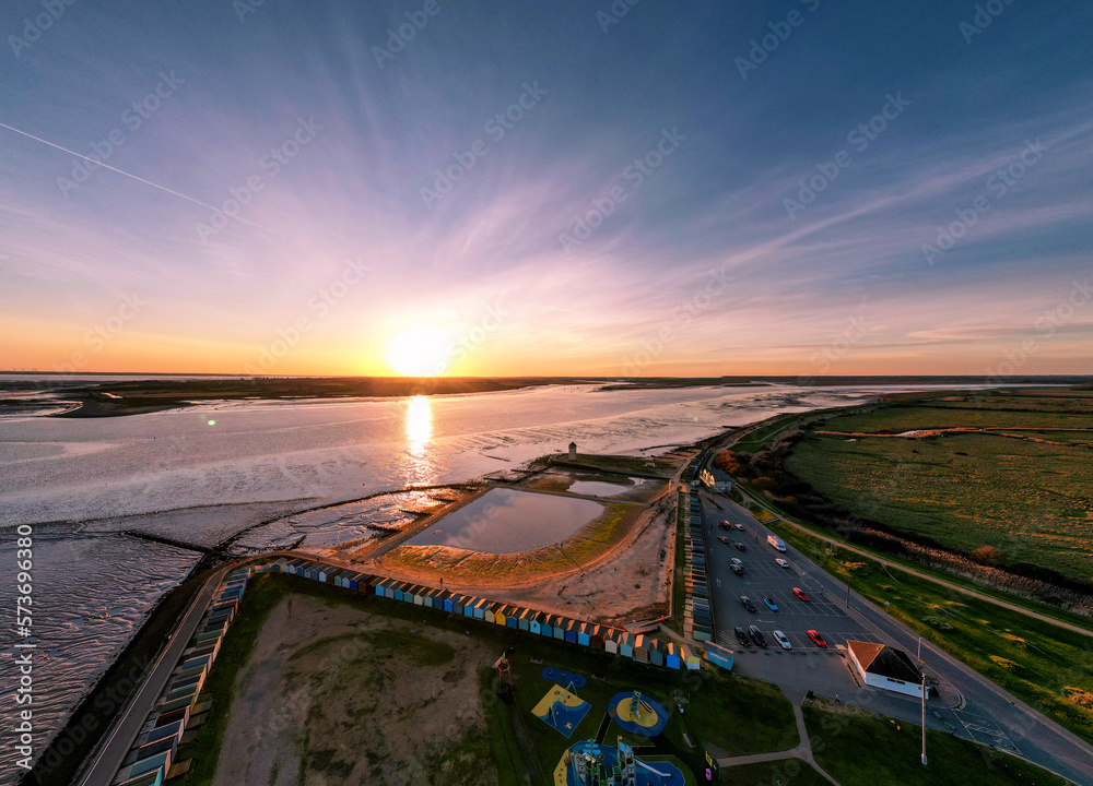 Sunset at the River Colne and Brightlingsea Beach in Essex, UK