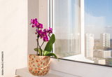 Pink orchid on a windowsill