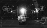 real estate investment concept, Real estate concept business, home insurance and real estate protection. Buy and sell houses and real estate online on a virtual screen.