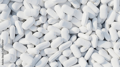Pile of white tablets or pills background for your presentation backdrop. Healthcare pharmacy