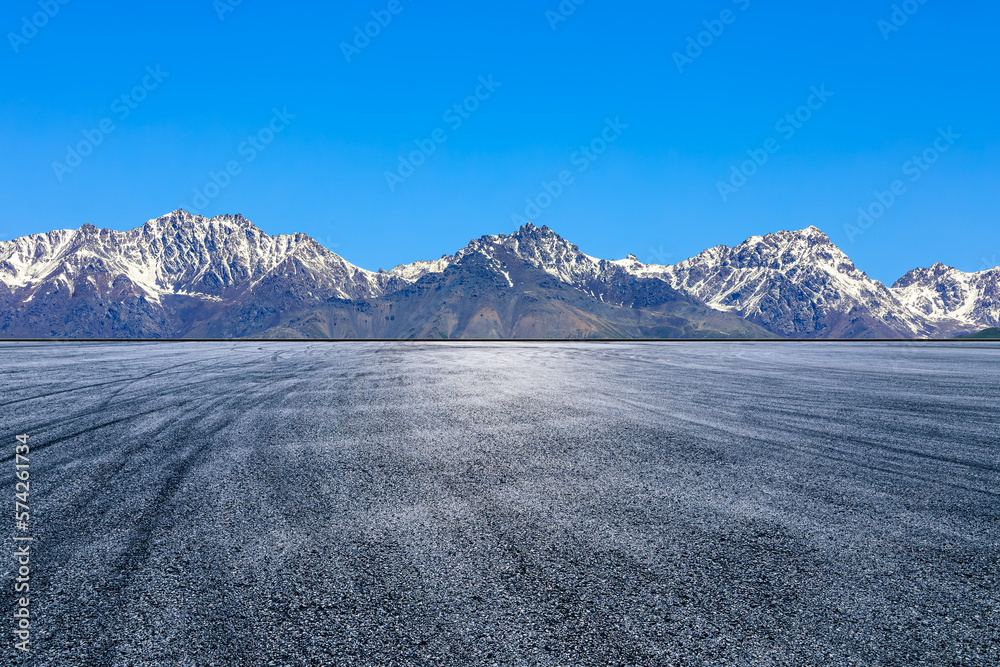 Empty asphalt road and snow mountain natural landscape under blue sky