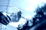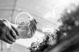 Close-up hand of farmer conducts research about lettuce for good agricultural quality inspection.agriculture, gardener, farm, harvest, vegetable, technology concept.