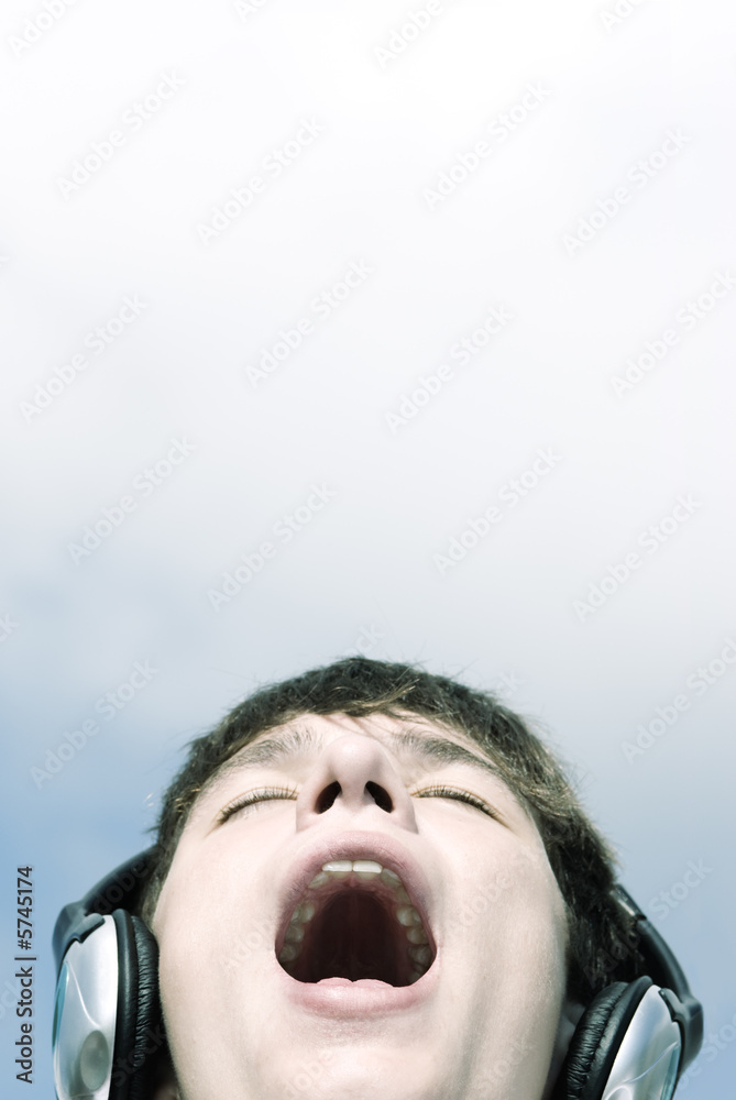 music open-air concept,young teen screaming,focus point on lips