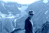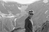 Caucasian hiker posing on Wilcox Ridge, Jasper National Park, Alberta, Canada