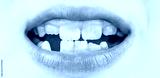 Kid patient open mouth showing cavities teeth decay. Child smile and show her crowding tooth. Close up of unhealthy baby teeths