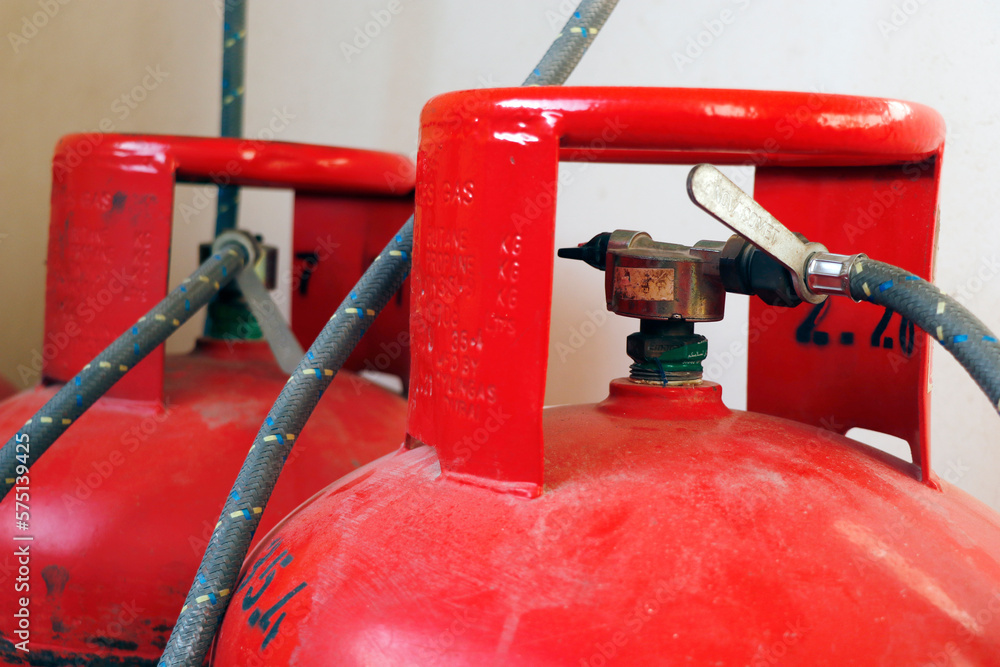 liquid petroleum gas (LPG) cylinders stored in a chamber