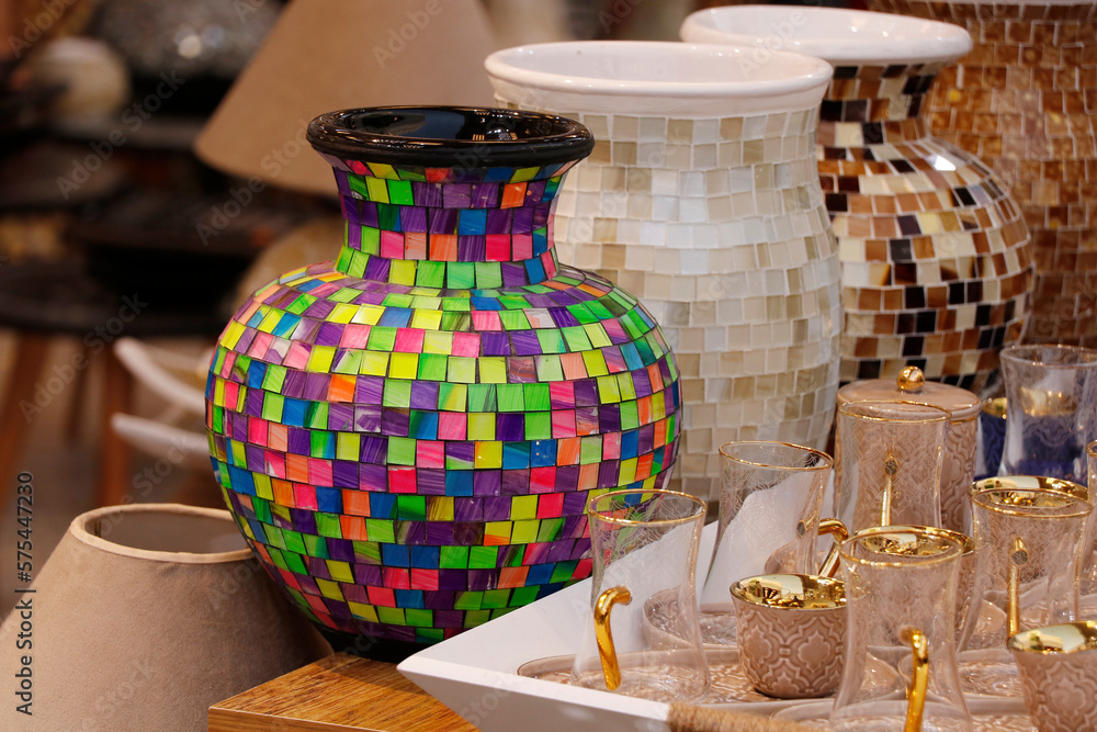 turkish arabic style fancy pots for sell in a shop, home interior decoration