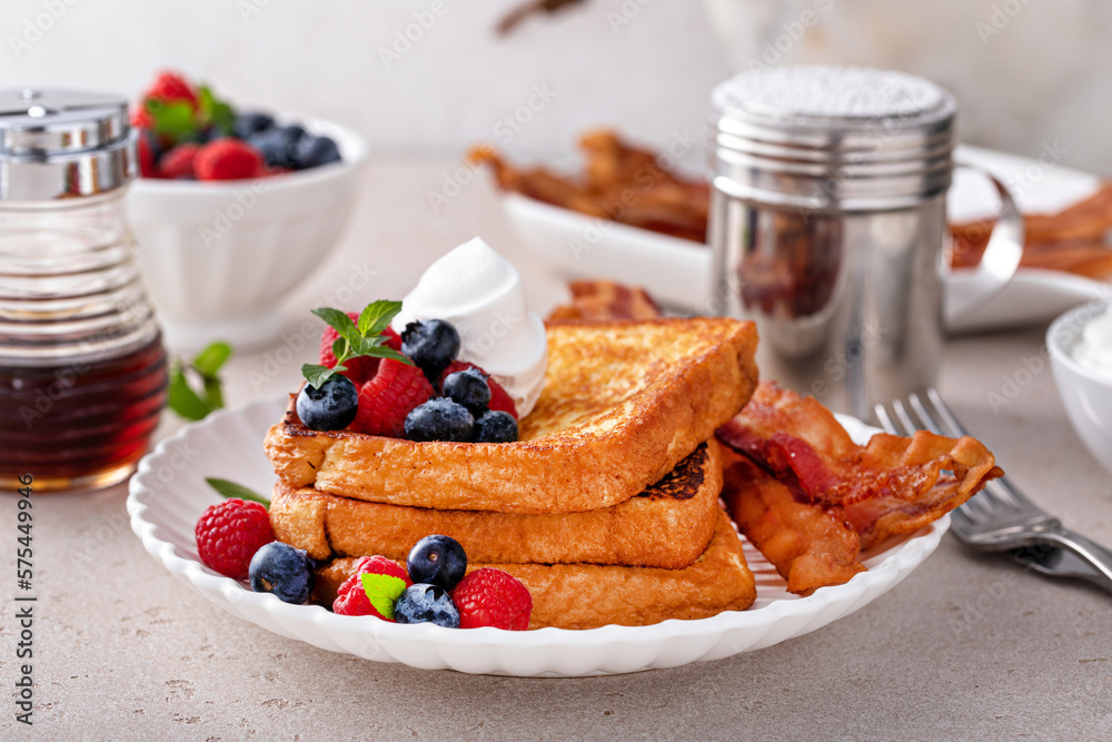 Classic french toast with bacon and berries