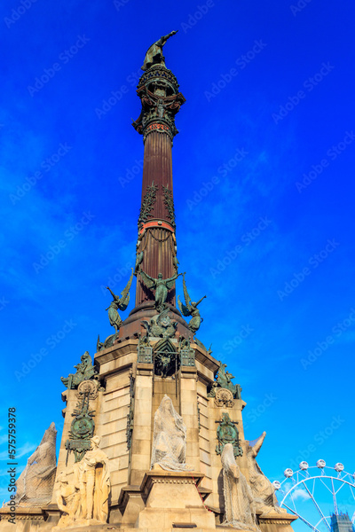 Christopher Columbus monument at the lower end of the famous street La Rambla in Barcelona, Spain