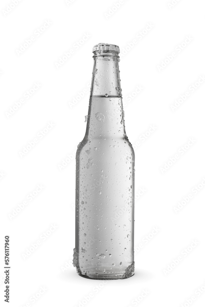 Cold glass transparent bottle of water isolated on a white.
