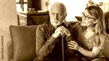 Shot of a female healthcare worker comforting elderly man at home. A woman carer concerned about an elderly man looking depressed. Feeling sad.
