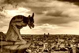 Gargoyle of Notre Dame de Paris overlooking city, Paris, France