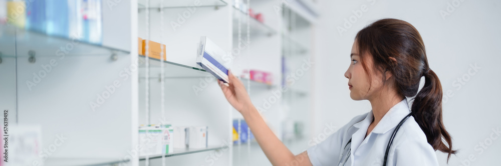 Asian woman pharmacist working at Pharmacy Drugstore . Medical healthcare concept