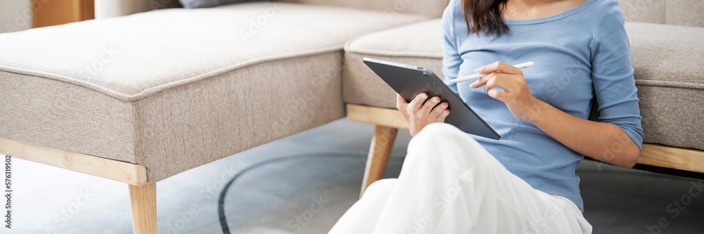 Graphic design using graphics tablet .drawing creative logo design brand designer sketch with Color swatch samples.