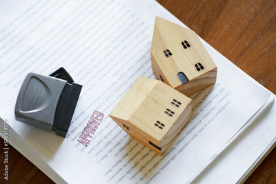 Home loan insurance. .Real estate broker and client sign contract insurance agreement document. Business meeting concept.