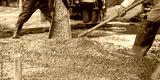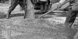 Construction worker pour wet concrete at construction site. Construction worker working with ready-mix concrete pouring from cement mixer truck. Construction concractor concept. Builder pour cement.