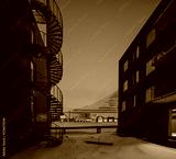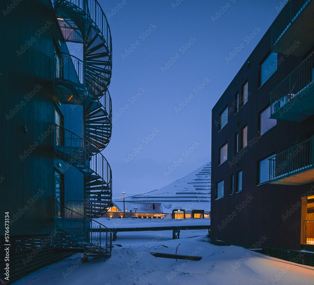 Norway landscape ice nature of the city view of Spitsbergen Longyearbyen . Winter polar night on Svalbard