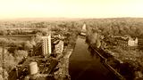 Large corn and wheat farms surrounding riverside Village of Pittsford is the oldest town in New York, incorporated in 1827 with historic Schoen Place