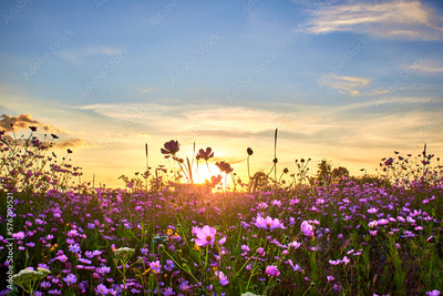 field of purple flowers at sunset in laguna grande monte escobedo zacatecas