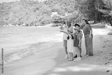 Group of teacher and school children on ecotourist trip and used binoculars learning show beach take care of environment is summer holiday camp save earth save world day concept.
