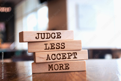 Wooden blocks with words 'JUDGE LESS ACCEPT MORE'.