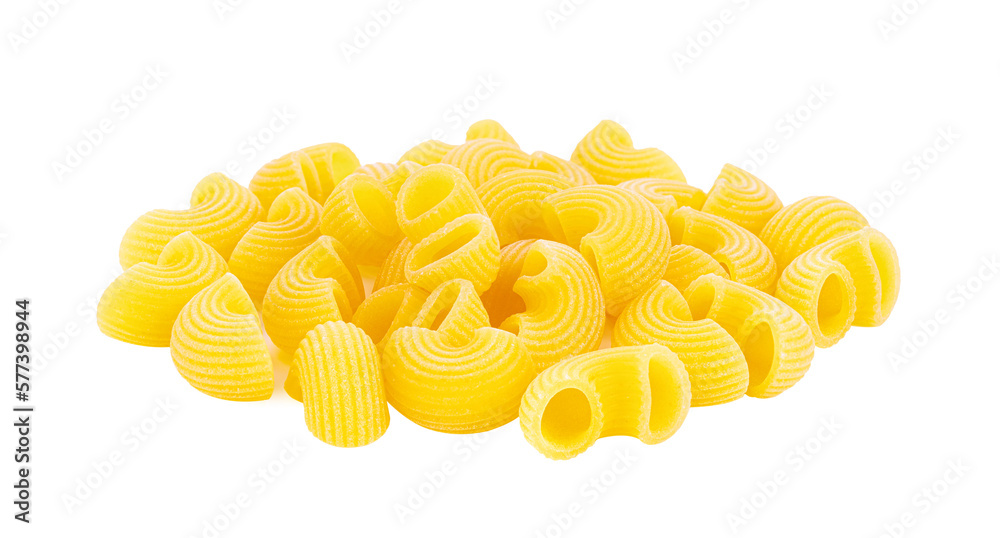 Pile of raw Macaroni (Gomiti Pasta) Isolated on transparent png