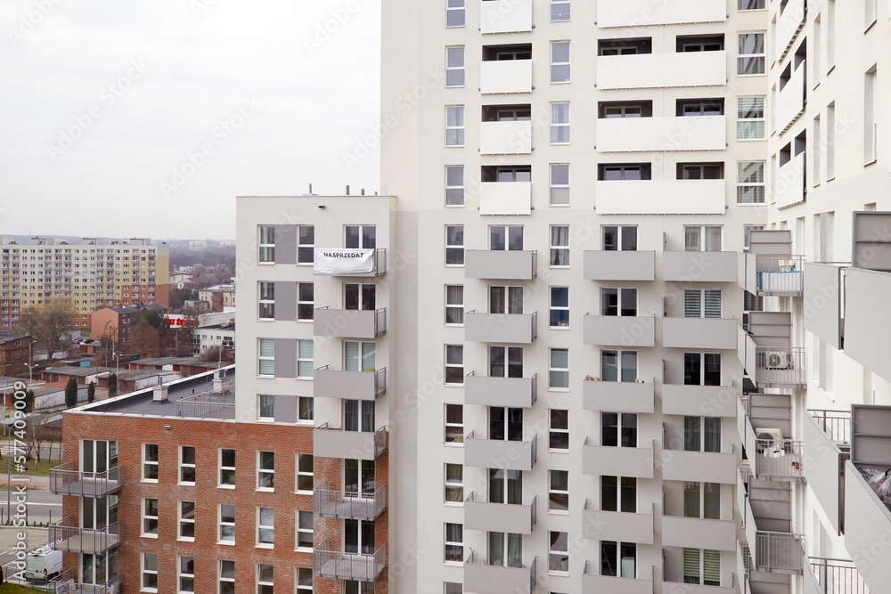 Elewacja nowego bloku mieszkalnego - mieszkanie na sprzedaż