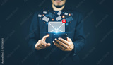 Man hand holding smartphone and show email screen on application mobile, Email message concept