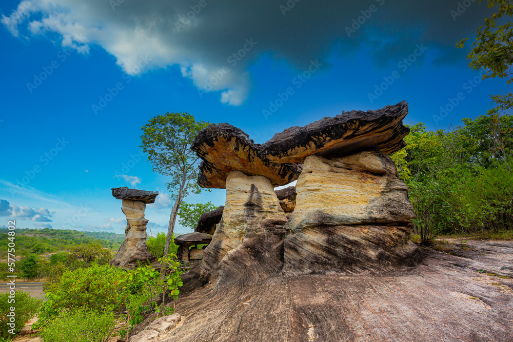Sao Chaliang, Mushroom-like rocks that have been eroded by water and wind in Ubon Ratchathani, Thailand.