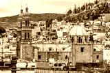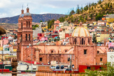 cathedral in downtown at sunny day, mountains in the background, zacatecas city