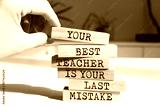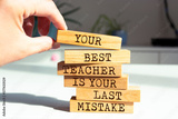 Wooden blocks with words 'Your Best Teacher Is Your Last Mistake'.