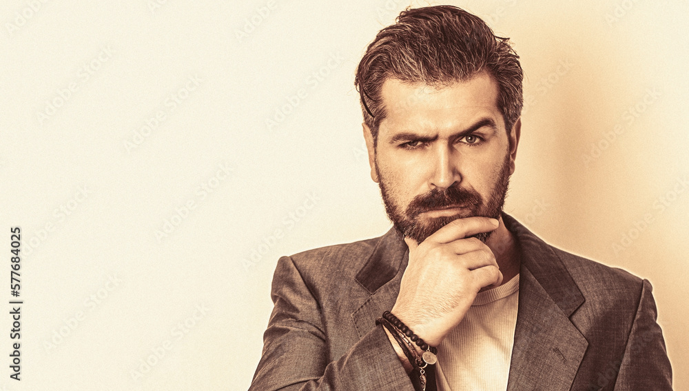 Elegant handsome man in suit. Handsome bearded businessman in classic suits. Man in suit. Male beard and mustache. Elegant man in business suit. Male in tuxedo