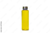 Extra virgin olive oil in a clear glass bottle. isolated on white background. PNG