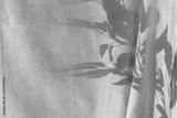 Floral sunlight shadow on beige curtain. Foliage silhouette in sunset light. Aesthetic natural background with copy space