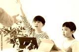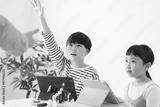 プログラミング教室でロボットの操作を学ぶ女の子と男の子