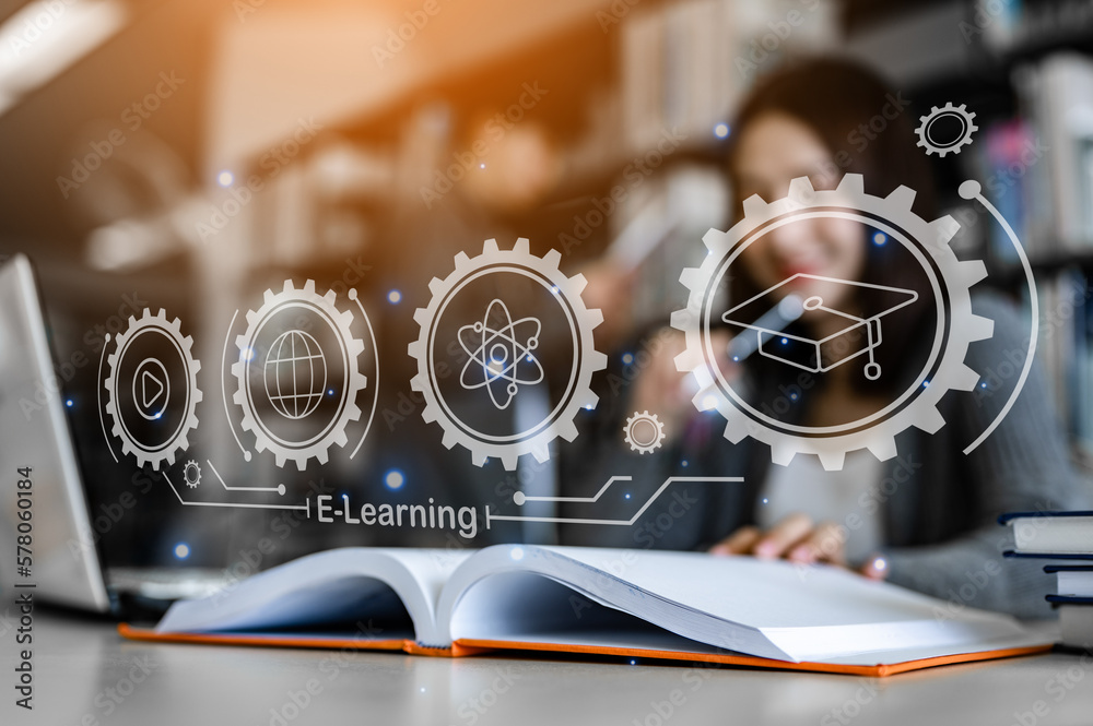 Asian woman student college opening and reading a book at library.library.Education, Learning, Student, Campus, University, Lifestyle concept.